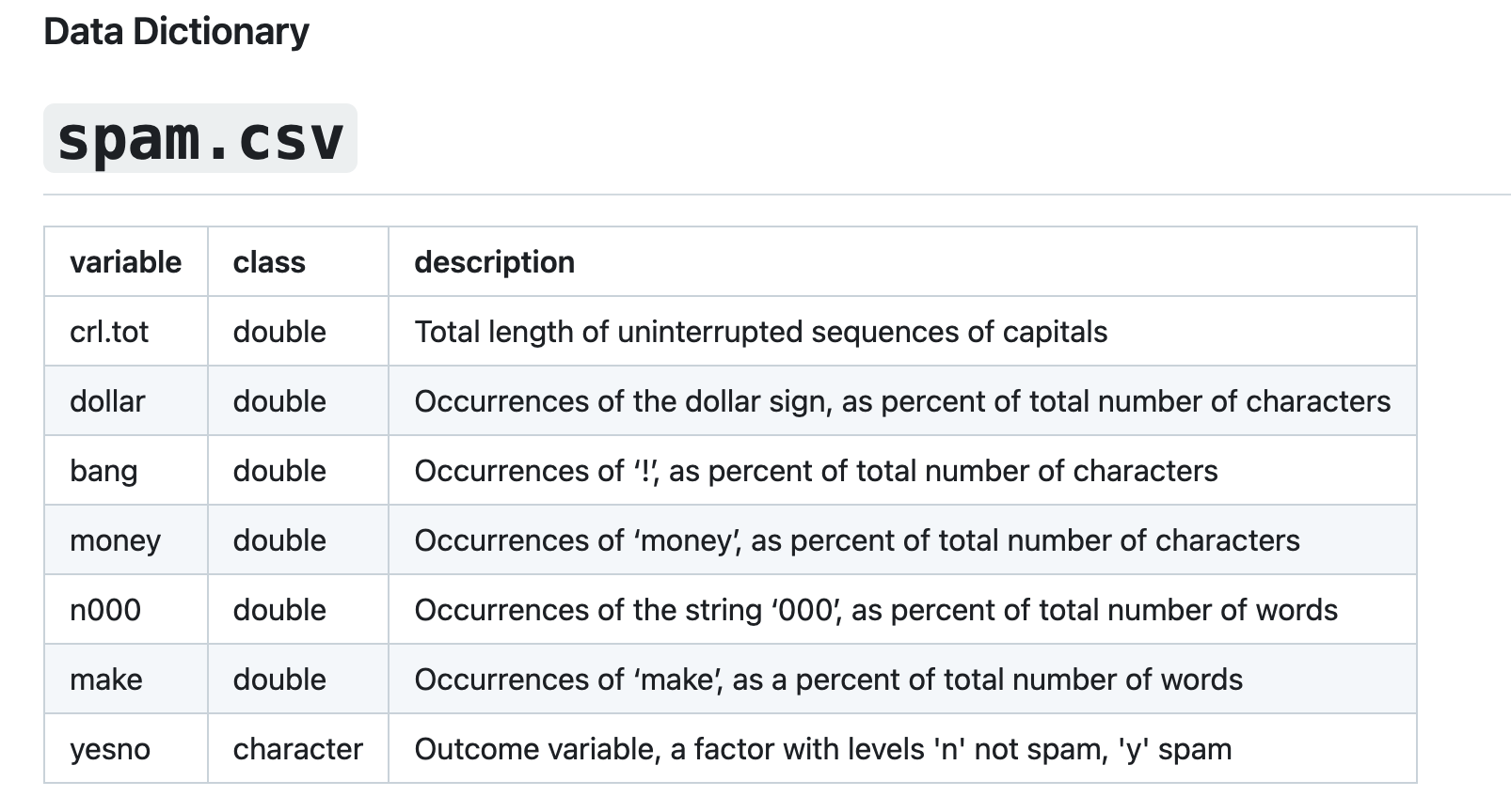 spam_rec =recipe(yesno ~ ., data = spam_train)