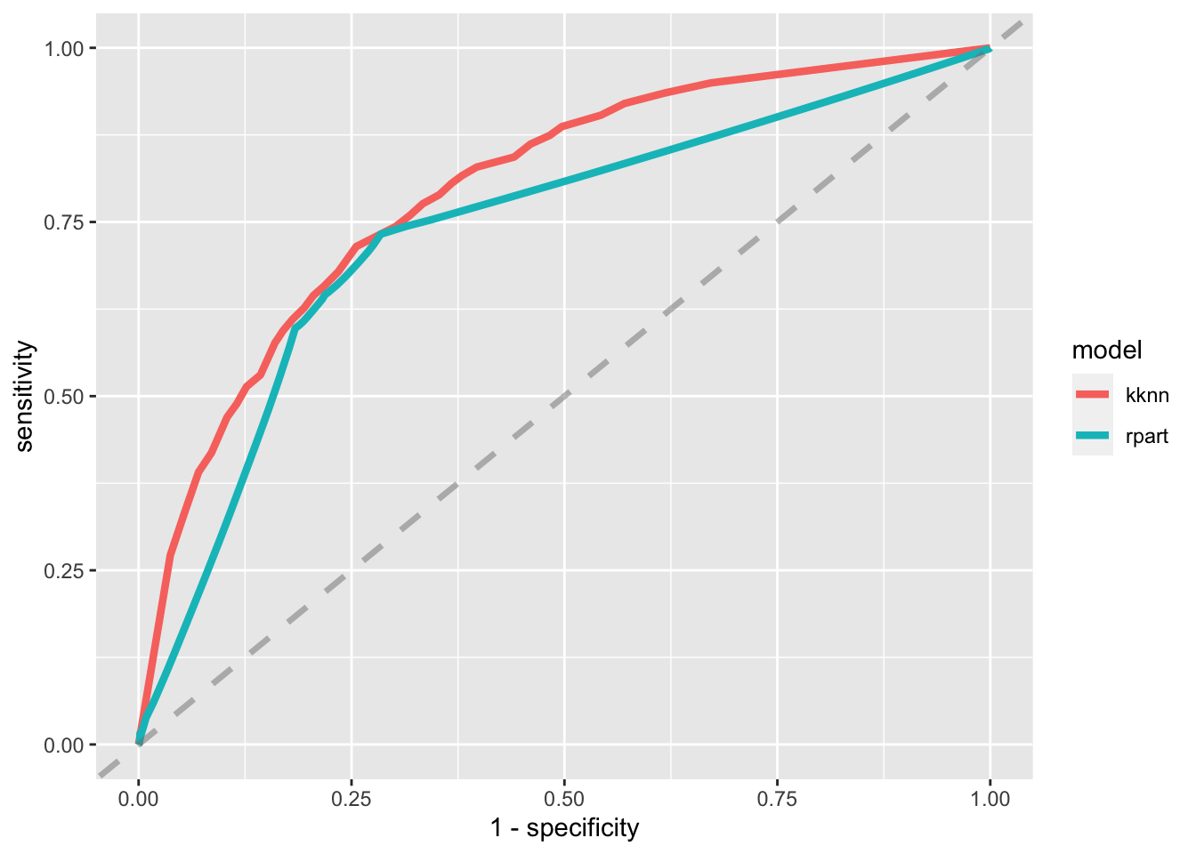ggplot(aes(x = 1 - specificity, y = sensitivity, color = model)) +