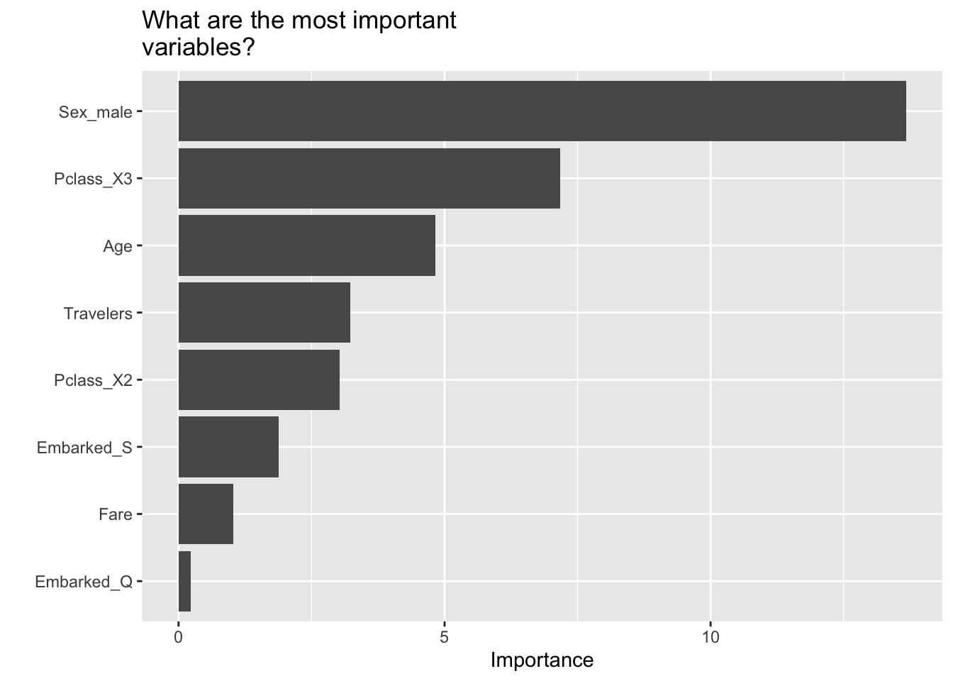 Call: stats::glm(formula = Survived ~ ., family = stats::binomial,